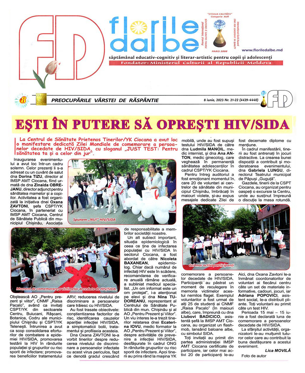 Revista Florile Dalbe reflectă activitățile IMSP AMT Ciocana și CSPT Ciocana în contextul marcării zilei mondiale combatere HIV-SIDA 2023