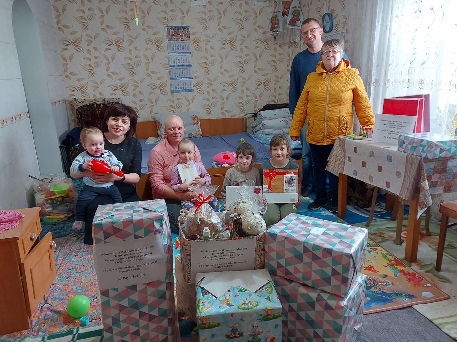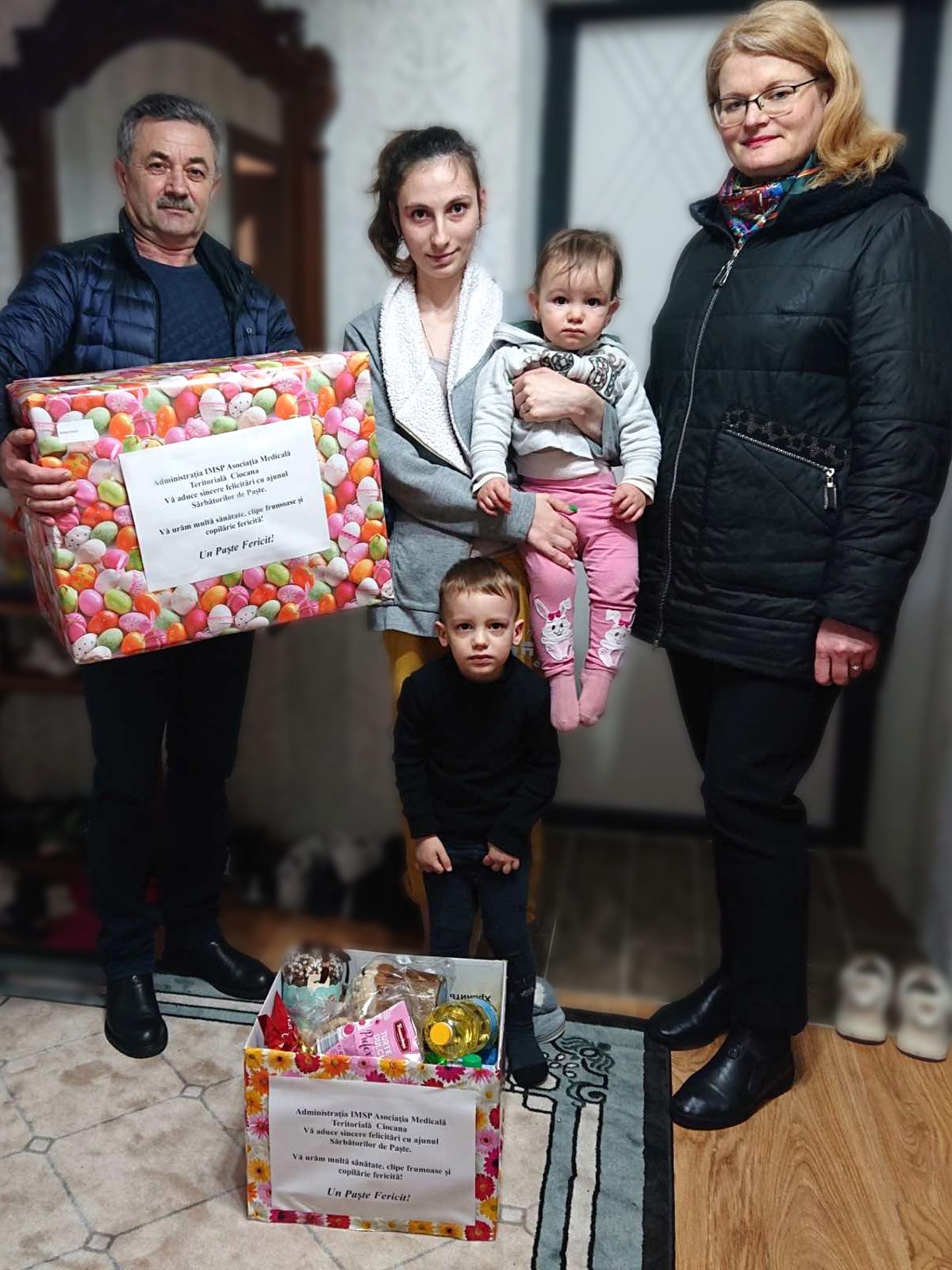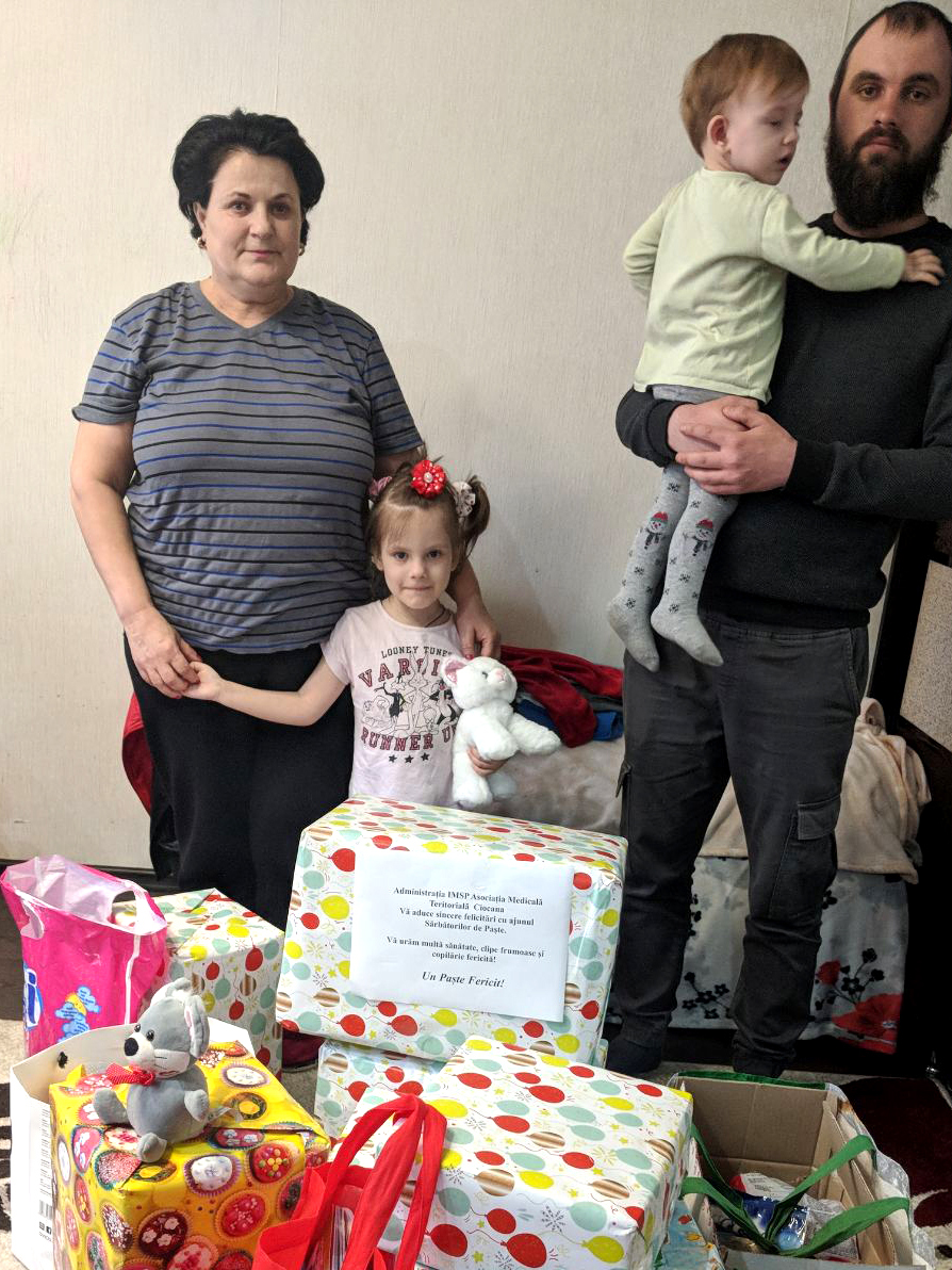 Darurile au fost împărțite de către colaboratorii instituției. Pentru 8 copii din 3 familii defavorizate și 3 foști lucrători medicali, care nu au putut vizita instituția, surpriza a venit acasă.
