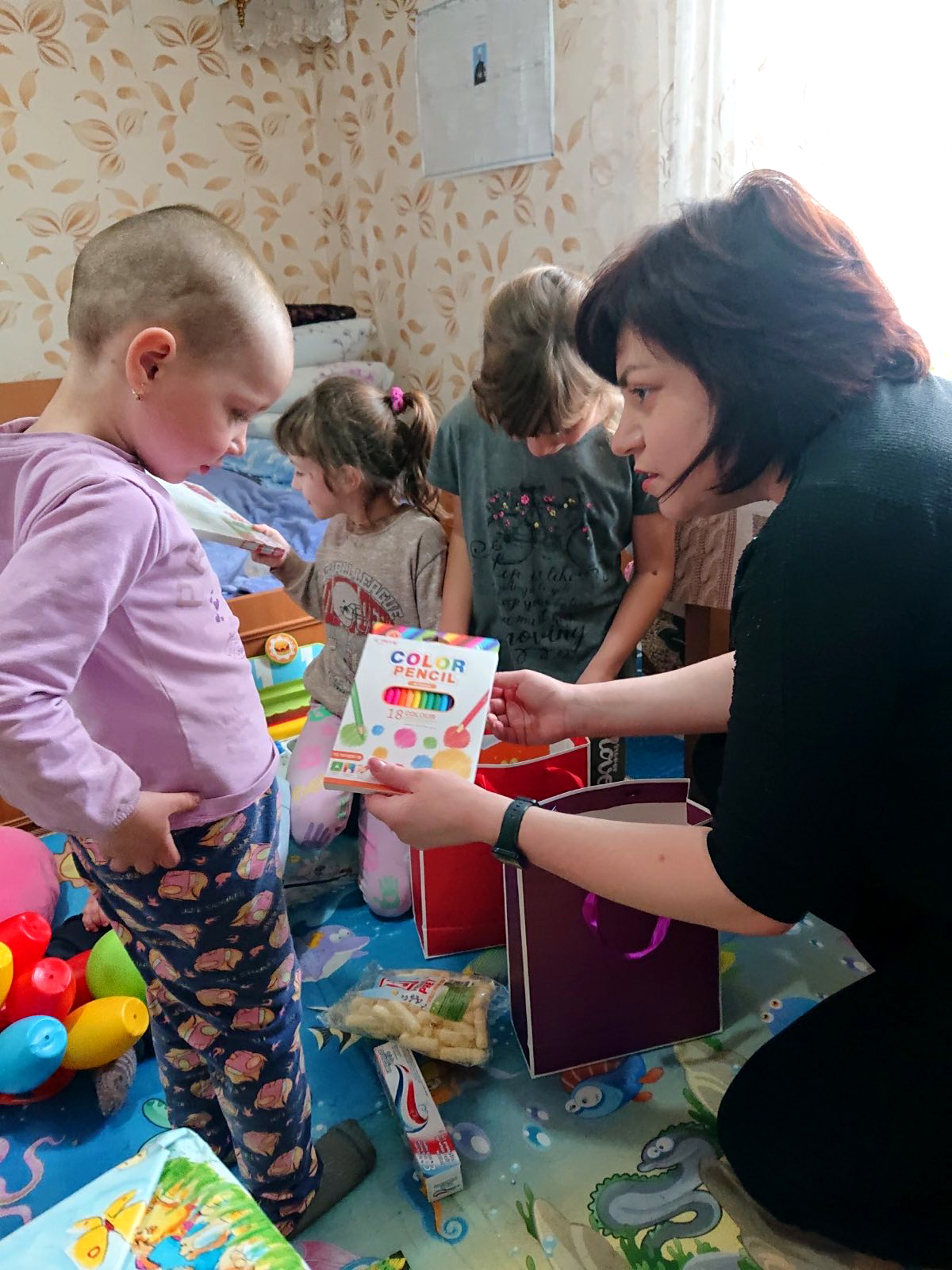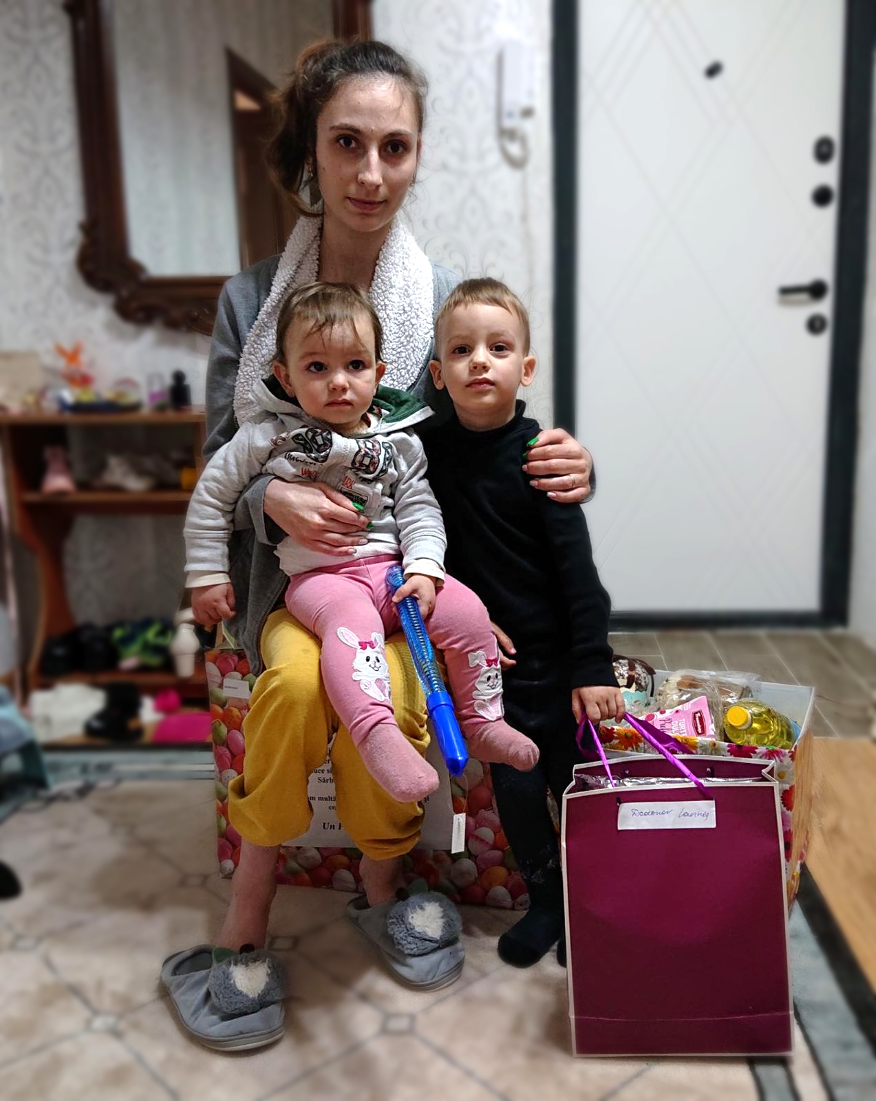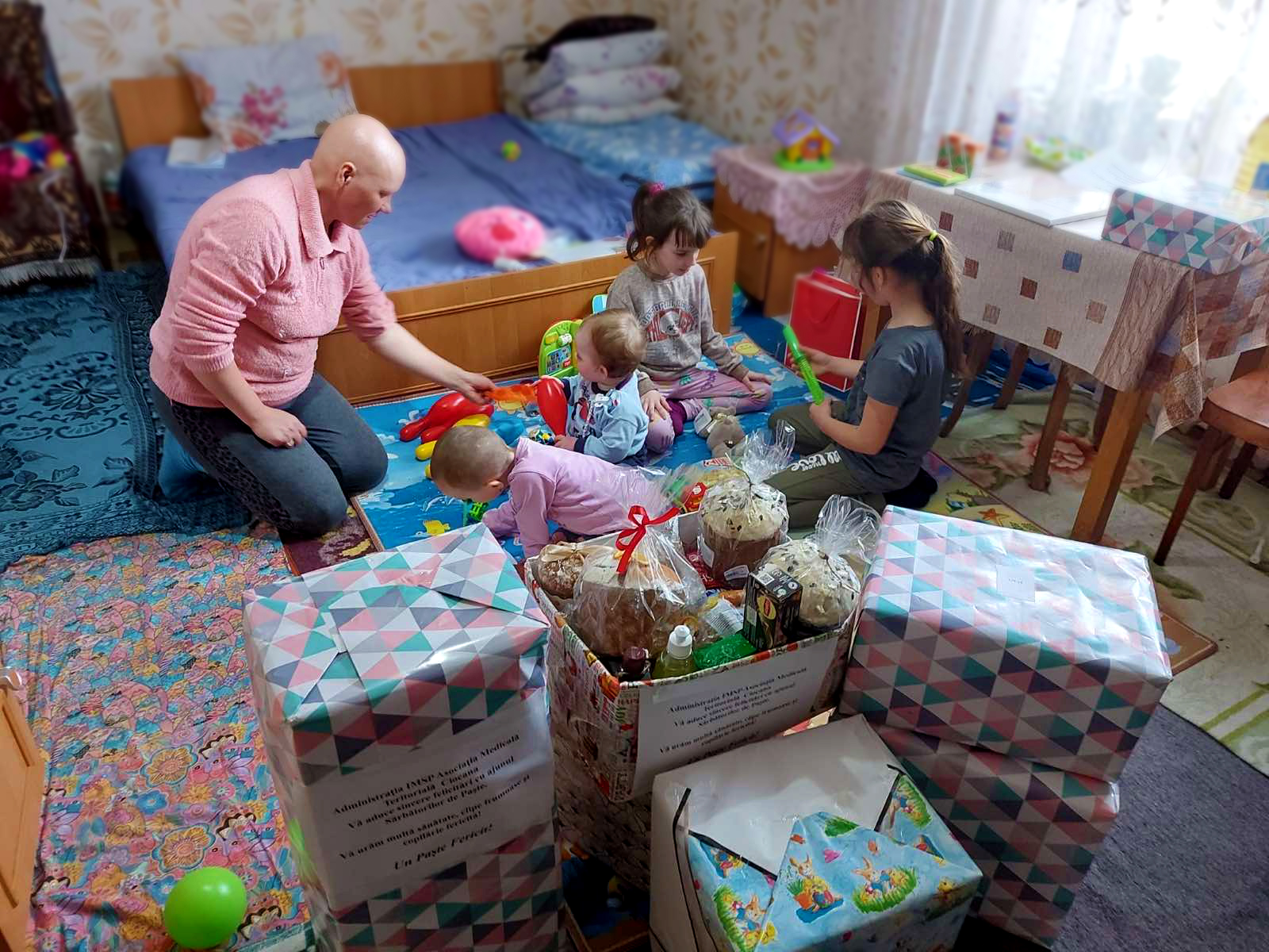 Darurile au fost împărțite de către colaboratorii instituției. Pentru 8 copii din 3 familii defavorizate și 3 foști lucrători medicali, care nu au putut vizita instituția, surpriza a venit acasă.