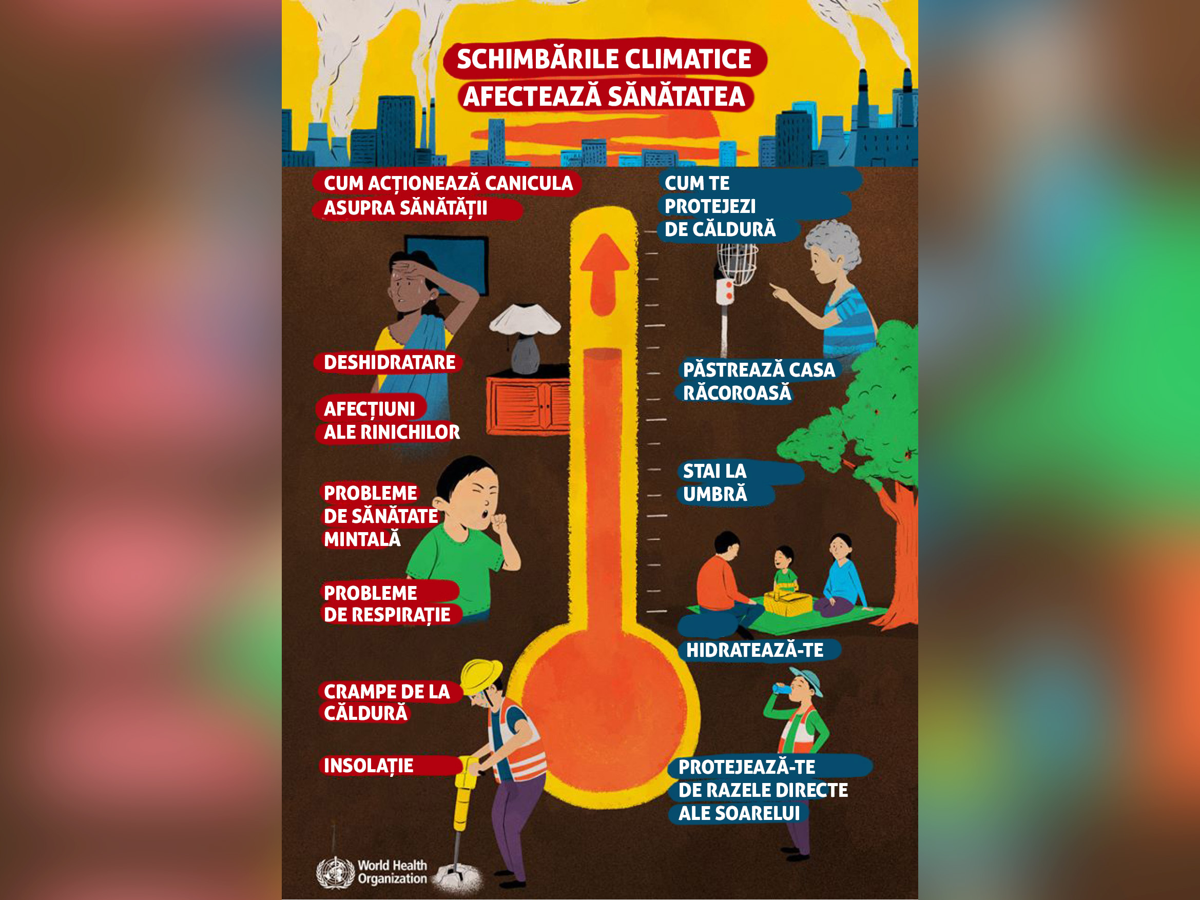 În fiecare an, temperaturile ridicate afectează sănătatea multor oameni, în special a vârstnicilor, a bebeluşilor, a persoanelor care lucrează în exterior și a persoanelor cu afecțiuni cronice. Canicula poate duce la epuizare și accidente vasculare cerebrale si poate agrava afecţiunile preexistente - cardiovasculare, respiratorii, renale sau mentale. Efectele dăunătoare ale caniculei asupra sănătăţii pot fi prevenite în mare măsură prin urmare a practicilor de sănătate publică.