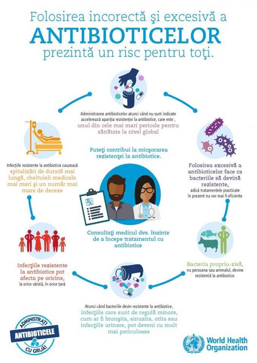 Când sunt utilizate incorect, antibioticele devin mai puțin eficiente, infecțiile obișnuite devin din ce în ce mai dificil sau chiar imposibil de tratat, crescând astfel riscul de răspândire a bolii, dezvoltarea de forme severe, deces și pot duce la costuri economice semnificative. Rezultatul utilizării inadecvate și excesive a antimicrobienelor este cunoscut sub numele de rezistență antimicrobiană (AMR) și poate pune în pericol sănătatea tuturor persoanelor.