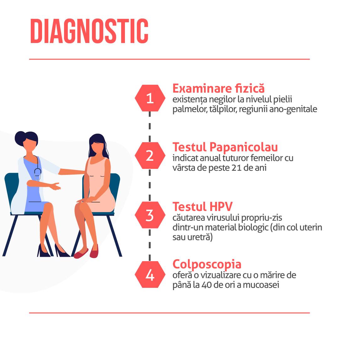 Există peste 100 de tipuri de HPV, unele cauzează veruci genitale, dar altele, cu risc crescut, pot duce la cancere precum cel de col uterin, anal, penian, vulvar, vaginal sau de cap și gât.