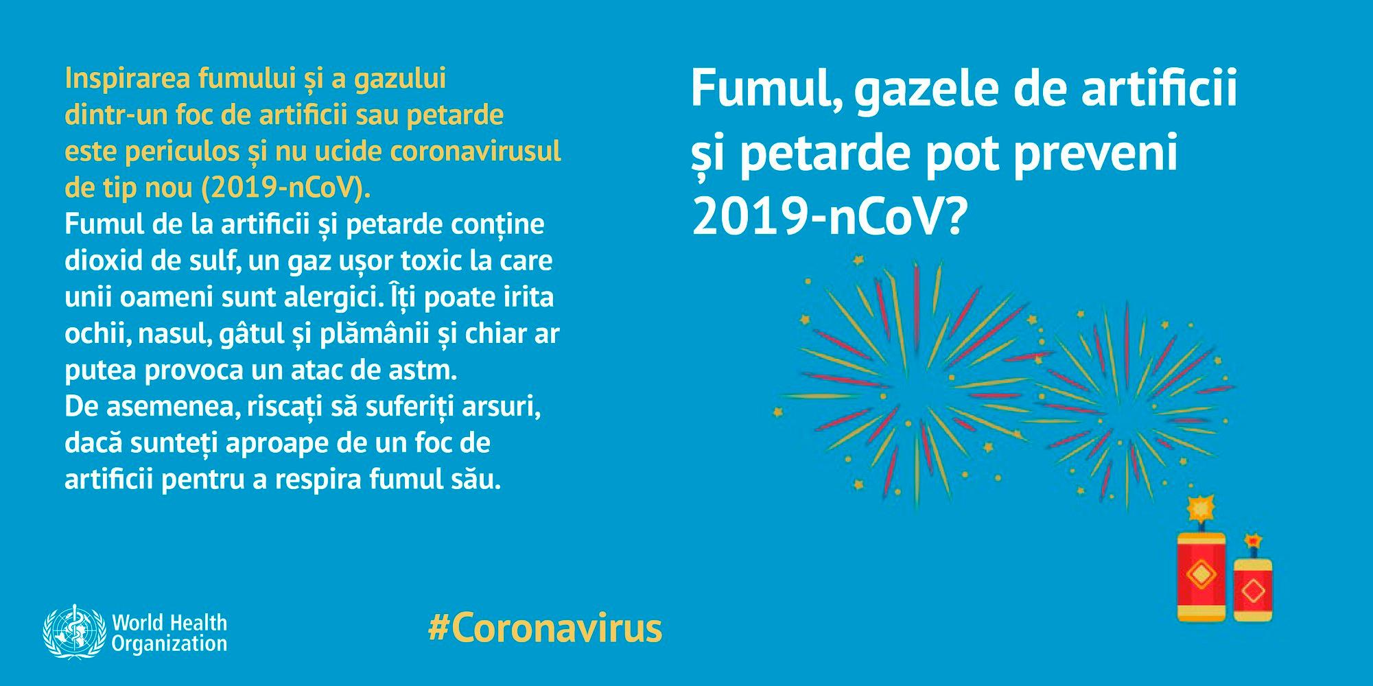 Dacă vrei să te protejezi de infectarea cu noul coronavirus, trebuie să menții igiena mâinilor și respiratorie de bază, să practici alimentarea sigură și să eviți contactul strâns, ori de câte ori este posibil, cu orice persoană care manifestă simptome de boală respiratorie, cum ar fi tusea sau strănutul. Următoarele măsuri nu sunt recomandate în mod specific ca remedii pentru COVID-19, dat fiind că nu sunt eficace pentru a te proteja și pot chiar fi dăunătoare: