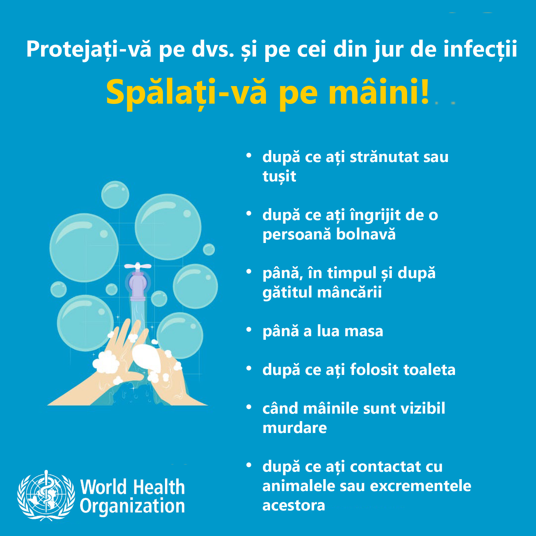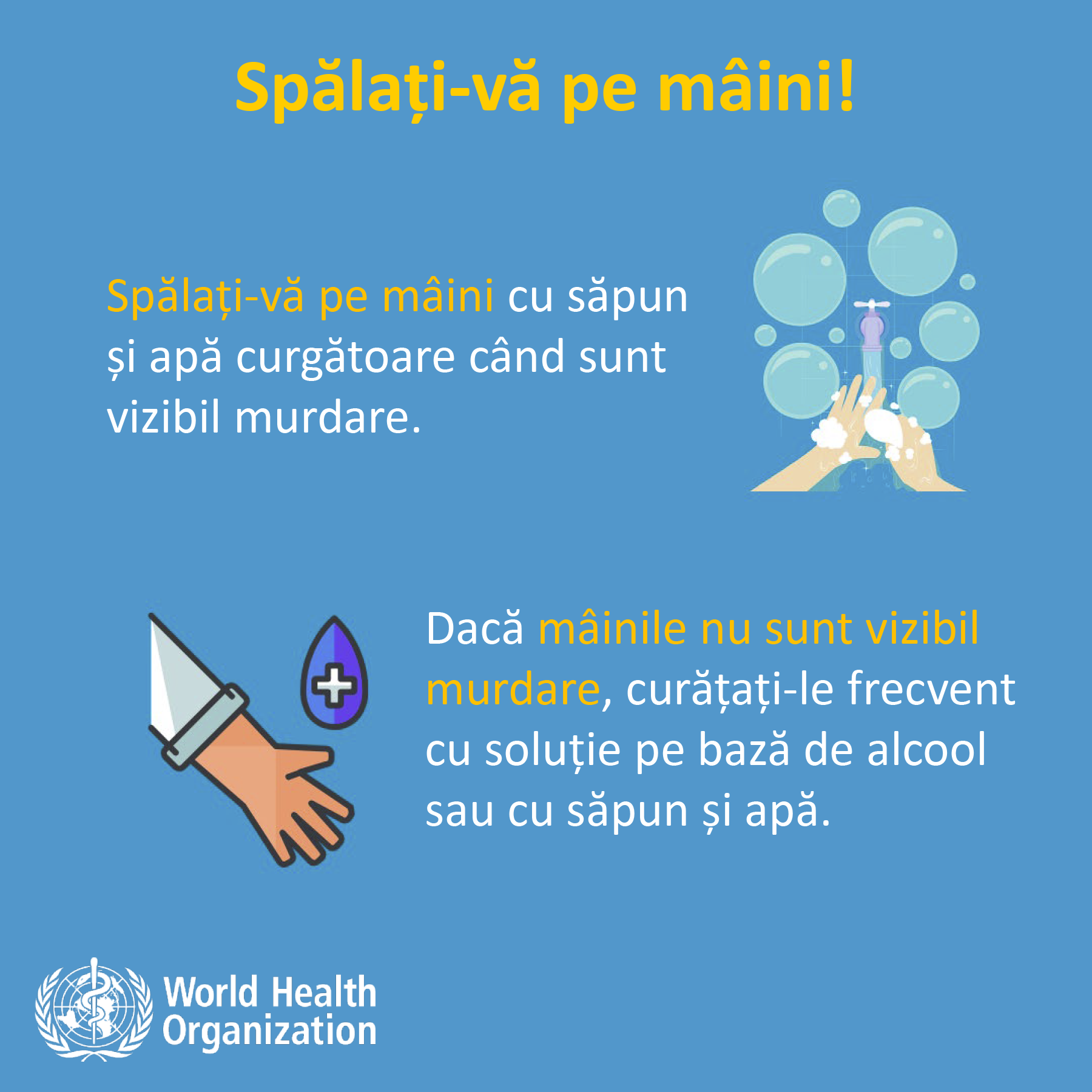 Spală-te pe mâini des cu un produs de mâini pe bază de alcool sau cu săpun și apă!De ce? Spălatul pe mâini cu un produs de mâini pe bază de alcool sau cu săpun ucide virusul, dacă acesta se află pe mâinile tale.