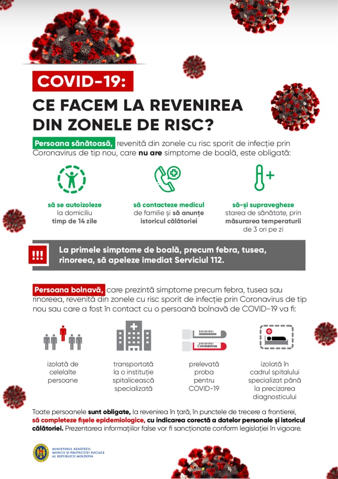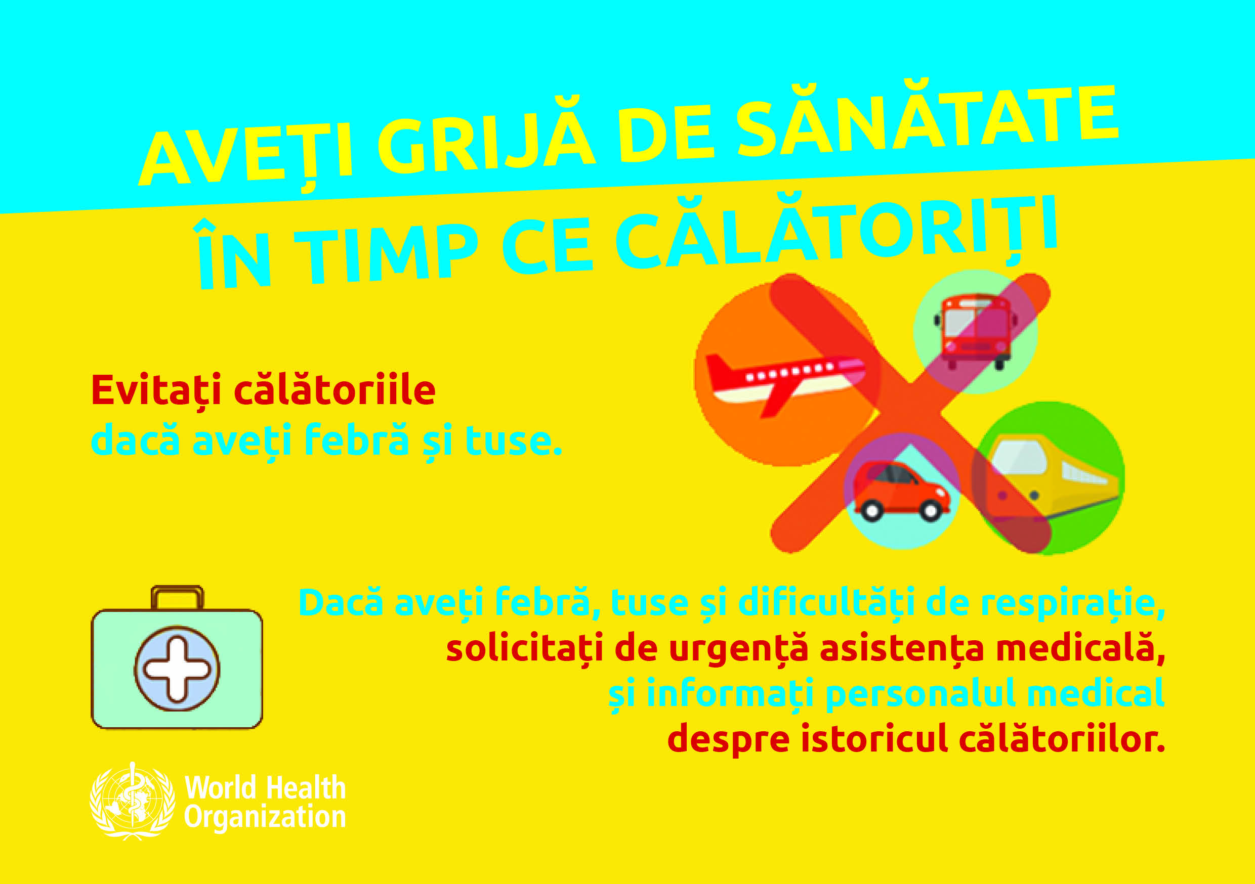 Dacă ai febră, tușești sau îți este greu să respiri, adresează-te timpuriu la medic. Spune-i prestatorului tău de servicii de sănătate dacă ai călătorit într-o zonă în China unde a fost raportat COVID-19 , sau dacă ai fost în contact strâns cu cineva care s-a deplasat din China și are simptome respiratorii.De ce?Ori de câte ori ai febră, tușești sau ți-e greu să respiri este important să te adresezi la medic prompt, dat fiind că aceasta s-ar putea datora unei infecții respiratorii sau altei afecțiuni grave. Simptomele respiratorii cu febră au un șir de cauze și, în funcție de istoricul tău personal al călătoriilor și de circumstanțe, COVID-19 ar putea fi una dintre ele.