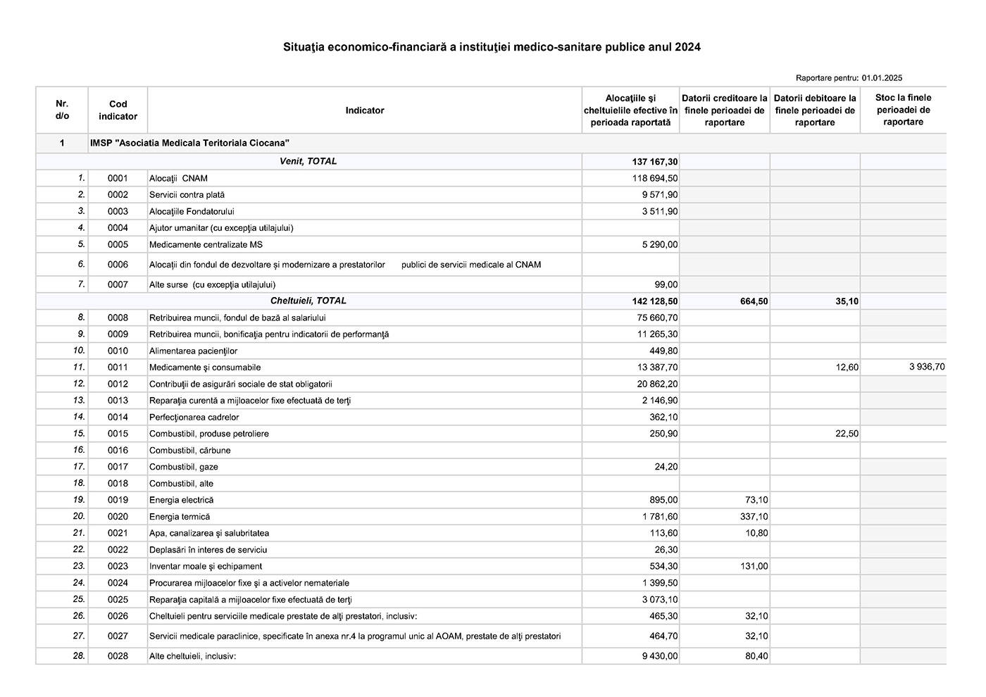 Planul de activitate al IMSP AMT CIOCANA pentru anul 2025