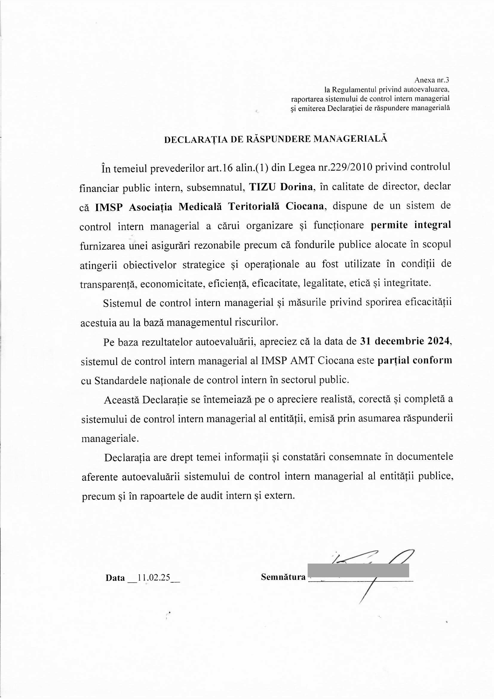Planul de activitate al IMSP AMT CIOCANA pentru anul 2024